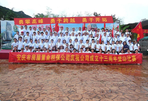 2013年6月23日,安慶市房屋置業(yè)擔保公司組織舉辦了以“勇攀高峰、勇于跨越、勇于開拓”為主題的巨石山登山比賽活動,慶祝公司成立十三周年。